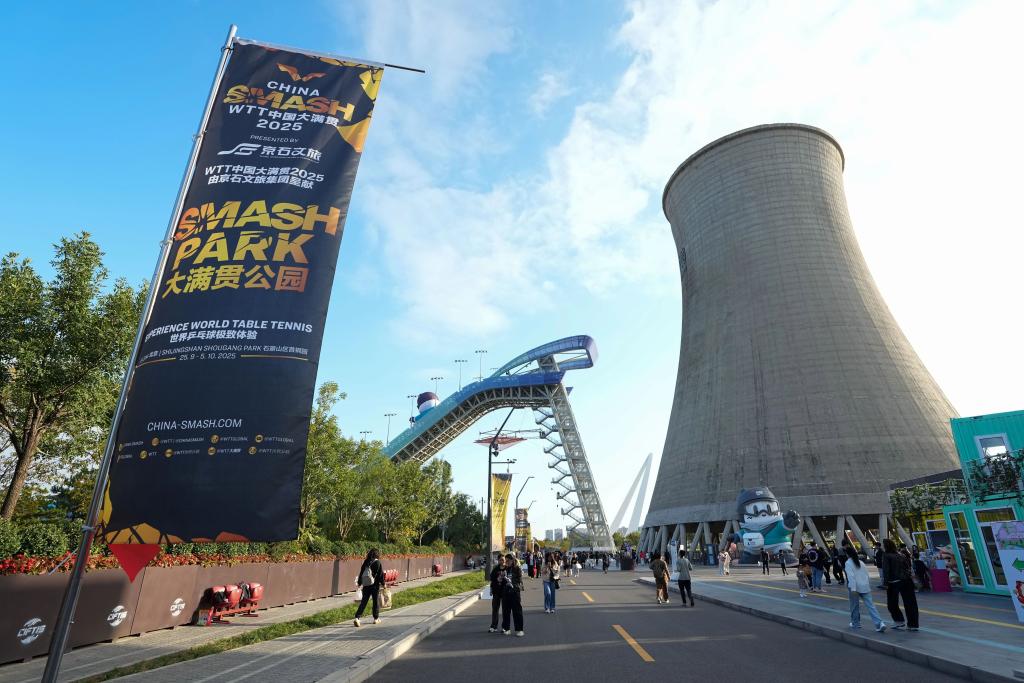 في الصورة الملتقطة يوم 3 أكتوبر 2025، زوار في حديقة "سماش" حيث أقيم حدث لمباريات "سماش" في الصين لبطولة العالم لكرة الطاولة 2025 في العاصمة الصينية بكين. |