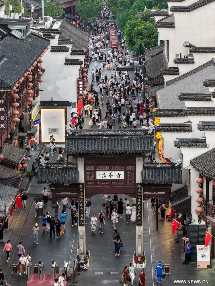 بكين 8 أكتوبر 2025 (شينخوا) في الصورة الملتقطة يوم 7 أكتوبر 2025، زوار في معبد فوتسي (كونفشيوس) في مدينة نانجينغ حاضرة مقاطعة جيانغسو بشرقي الصين.