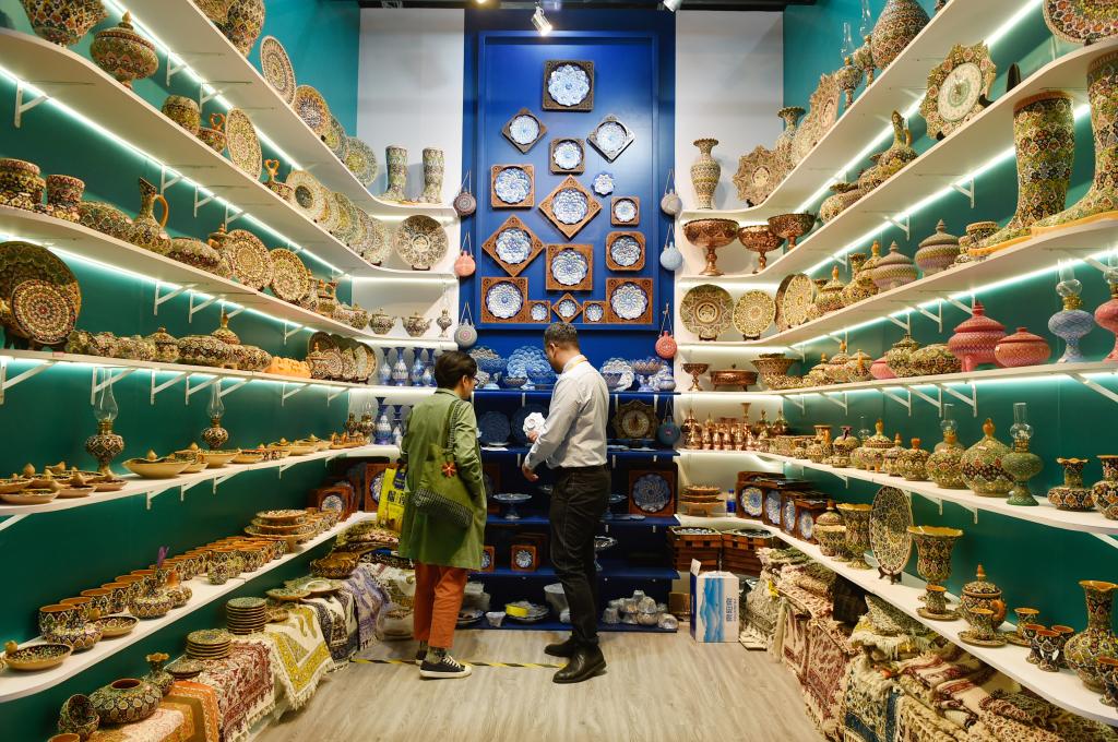 وداخل منطقة عرض السلع الاستهلاكية، يستخدم هوفي، ممثل جمعية الصداقة الإيرانية-الصينية للشؤون الثقافية والسياحية في الصين، اللغة الصينية بطلاقة لإبراز مميزات السجاد الإيراني أمام الزوار، حيث لفت إلى أنه منذ الدورة الأولى للمعرض، ازداد عدد الشركات الإيرانية المشاركة فيه تدريجيا، كما توسعت مساحات أجنحتها عاما بعد عام، حتى تجاوزت مساحة أجنحة الشركات الإيرانية هذا العام ألفي متر مربع، مؤكدا أن "المعرض باعتباره منصة ضخمة، يمكن أن يسهم في تعزيز مكانة الاقتصاد الإيراني عالميا".