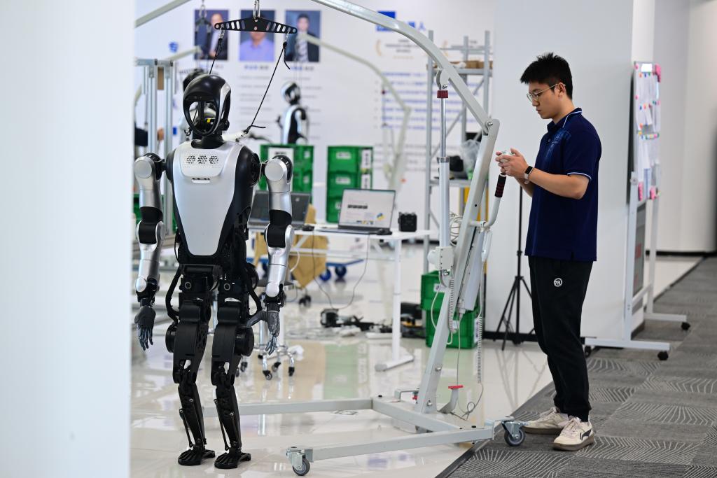 خفي 28 نوفمبر 2025 (شينخوا) في الصورة الملتقطة يوم 24 أكتوبر 2025، مهندس يقوم بضبط روبوت بشري في مدينة خفي بمقاطعة آنهوي بشرقي الصين.