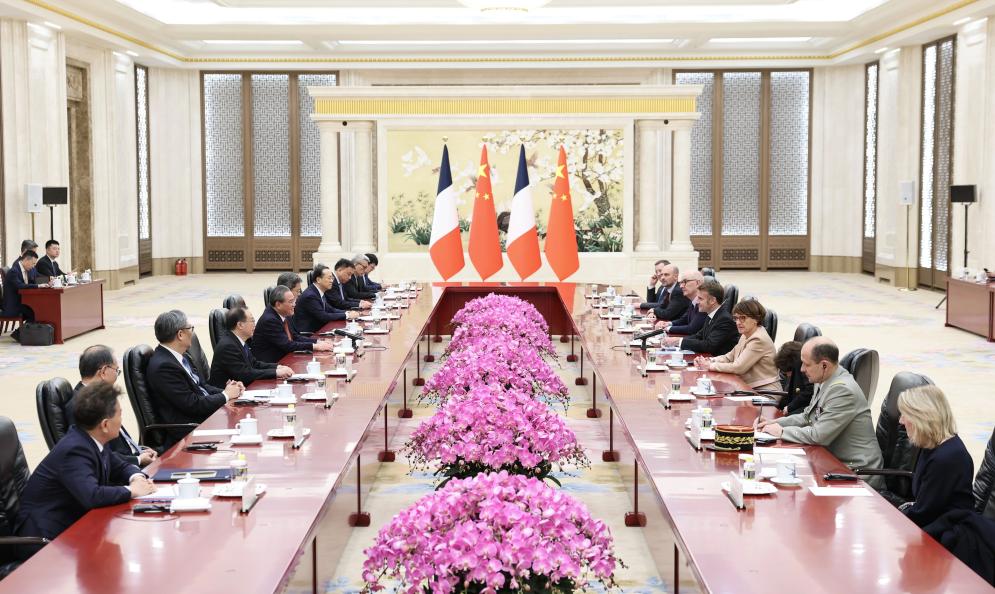 ودعا فرنسا إلى التركيز على التعاون والتعامل مع الخلافات بشكل مناسب، بهدف الحفاظ على اتجاه تنموي صحيح في العلاقات بين الصين والاتحاد الأوروبي، معربا عن استعداد الصين للعمل مع فرنسا على التمسك بقوة بالتجارة الحرة والعولمة الاقتصادية.