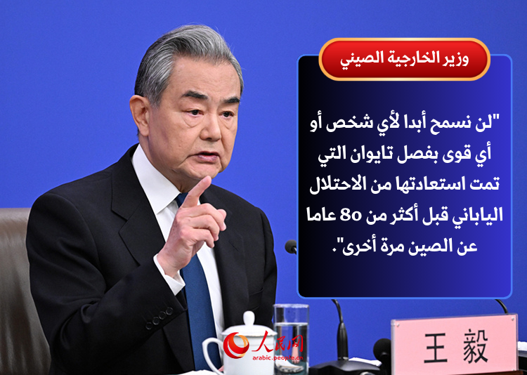 8 مارس 2026 /صحيفة الشعب اليومية أونلاين/ قال وزير الخارجية الصيني وانغ يي اليوم ببكين إنه لا يجوز لأي فرد أو قوة فصل تايوان عن الصين، وحل مسألة تايوان وتحقيق إعادة التوحيد الكامل للوطن الأم مسيرة تاريخية لا تقاوم، من يواكبها يزدهر، ومن يعاكسها يهلك.…