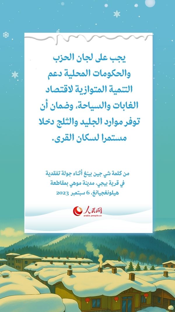 23 يناير 2026/صحيفة الشعب اليومية أونلاين/ أشار الأمين العام شي جين بينغ إلى أن "صناعة الجليد والثلج، تعد صناعة ضخمة وواعدة"، مؤكدا على أهمية استثمار الموارد السياحية الجليدية والثلجية لتنشيط السياحة والرياضات الشتوية بما يعزّز التنمية الاقتصادية.